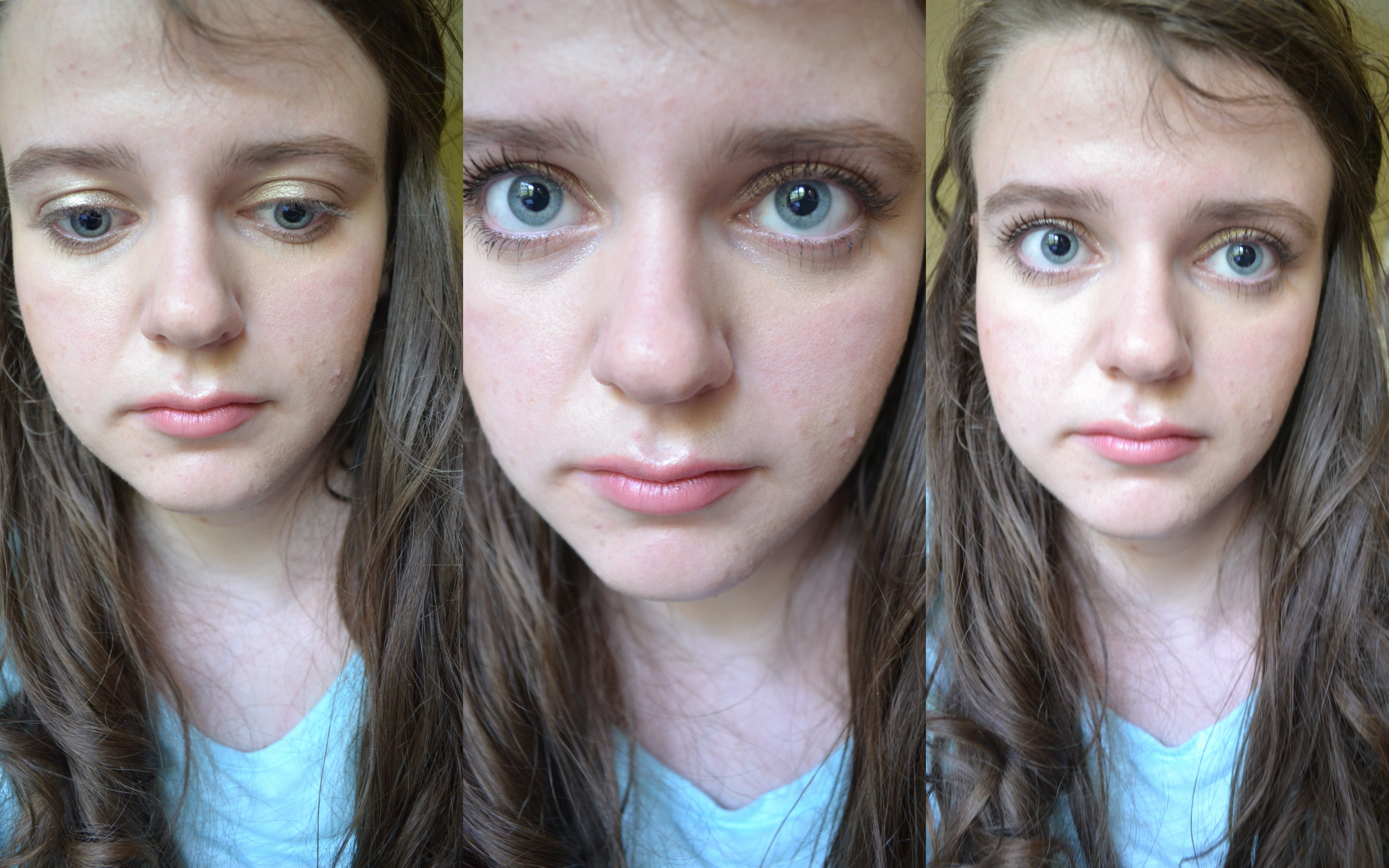 From no mascara to close up with mascara, followed by a zoomed-out shot